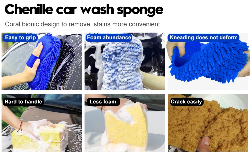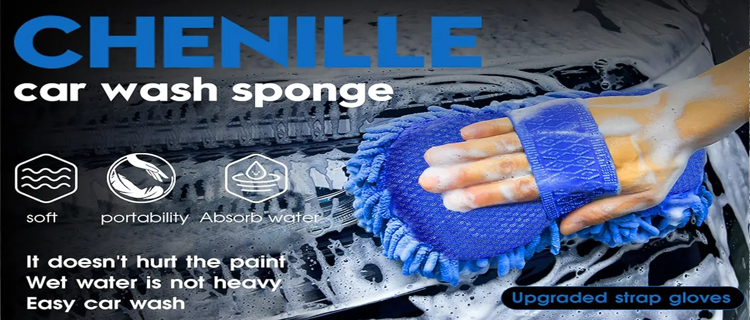 1PC Microfiber Car Wash Sponge - Non-Scratch Two-Sided Chenille Mitt for Cars, Trucks, SUVs, Boats, RVs